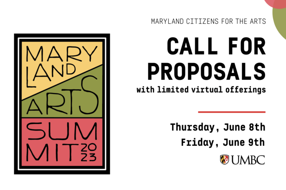 The Maryland Arts Summit is coming up on June 8th and June 9th. Now Accepting Proposals until March 29th. The Maryland Arts Summit, hosted at UMBC, is a statewide conference presented by and for the Maryland arts sector, which includes, but is not limited to: Arts Advocates, Arts Educators & Teaching Artists, Independent Artists, Arts…