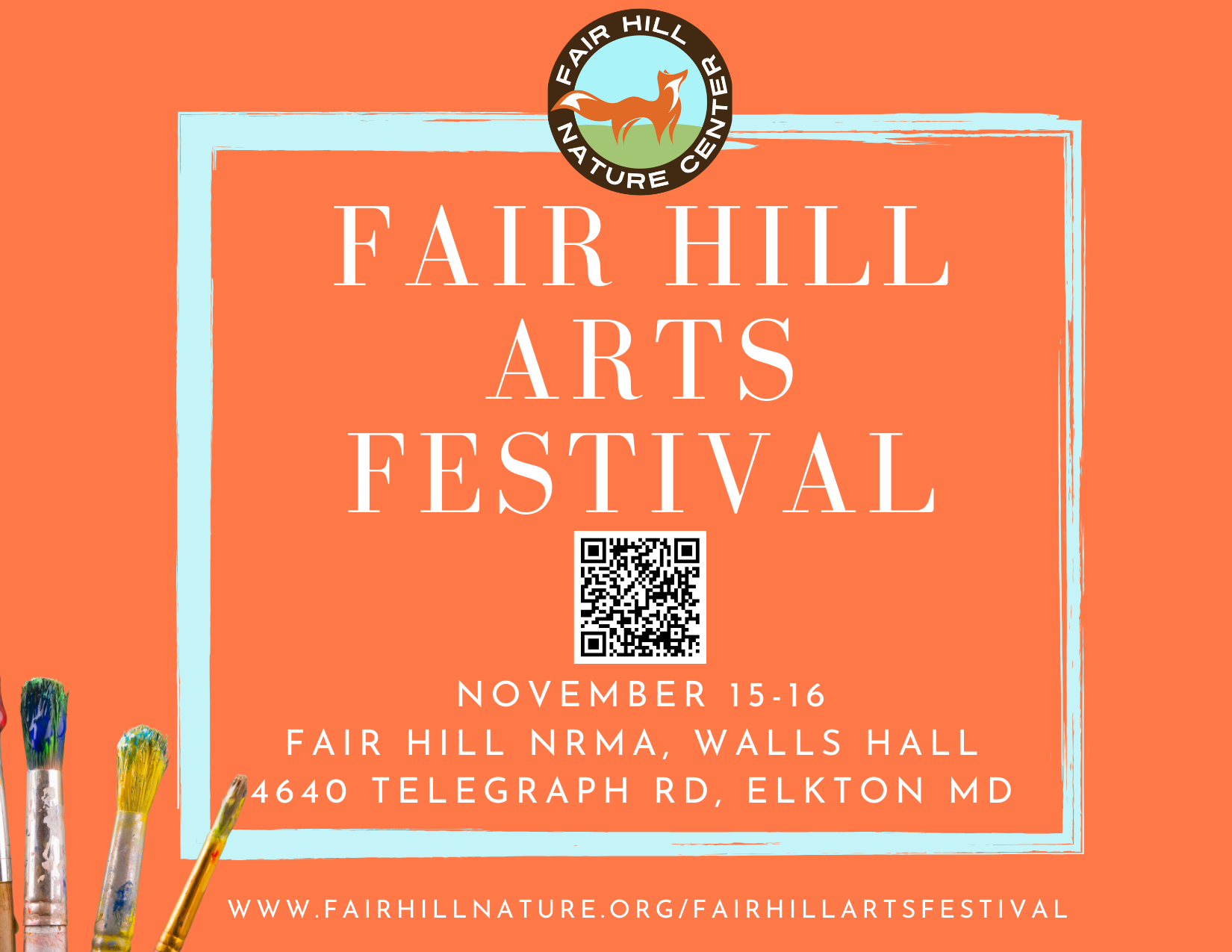 Fair Hill Arts Festival + Add to Google Calendar + iCal / Outlook export The event is finished. Date Nov 15 2025 Expired! Time 10:00 am - 4:00 pm Location Fair Hill NRMA Walls Hall, 4640 Telegraph Road, Elkton, MD 21921 Category Art Exhibitions Local Events Organizer Fair Hill Nature Center Phone 410-398-4909 Email info@fairhillnature.org Share this event