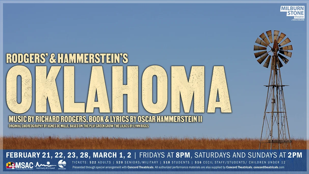 Saddle up for a rootin’-tootin’ good time as Rodgers and Hammerstein’s classic musical ‘Oklahoma!’ rides onto the Milburn Stone Theatre stage! Set against the backdrop of the American frontier, this beloved tale spins the story of love, rivalry, and the pioneering spirit that shaped a nation. Follow the spirited cowgirl Laurey as she finds herself torn between two suitors: the charming cowboy Curly and the brooding farmhand Jud. With a toe-tapping score featuring timeless tunes like ‘Oh, What a Beautiful Mornin” and ‘The Surrey with the Fringe on Top,’ ‘Oklahoma!’ captures the heart and soul of the Wild West. Packed with lively dance numbers, unforgettable characters, and a dash of romance, this exhilarating show celebrates the triumph of love and the unbreakable spirit of the American frontier. So grab your boots and join us for an unforgettable journey to the heart of Oklahoma!”