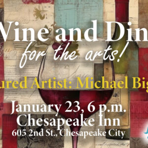 Join us for the March Wine & Dine for the Arts dinner at The Wellwood in Charlestown, MD on Friday, March 27, 2026 starting at 6 p.m. Featured Artist: Colleen Tiefenthal. 100% of all sales made that evening go directly to her. Menu Detail Below.